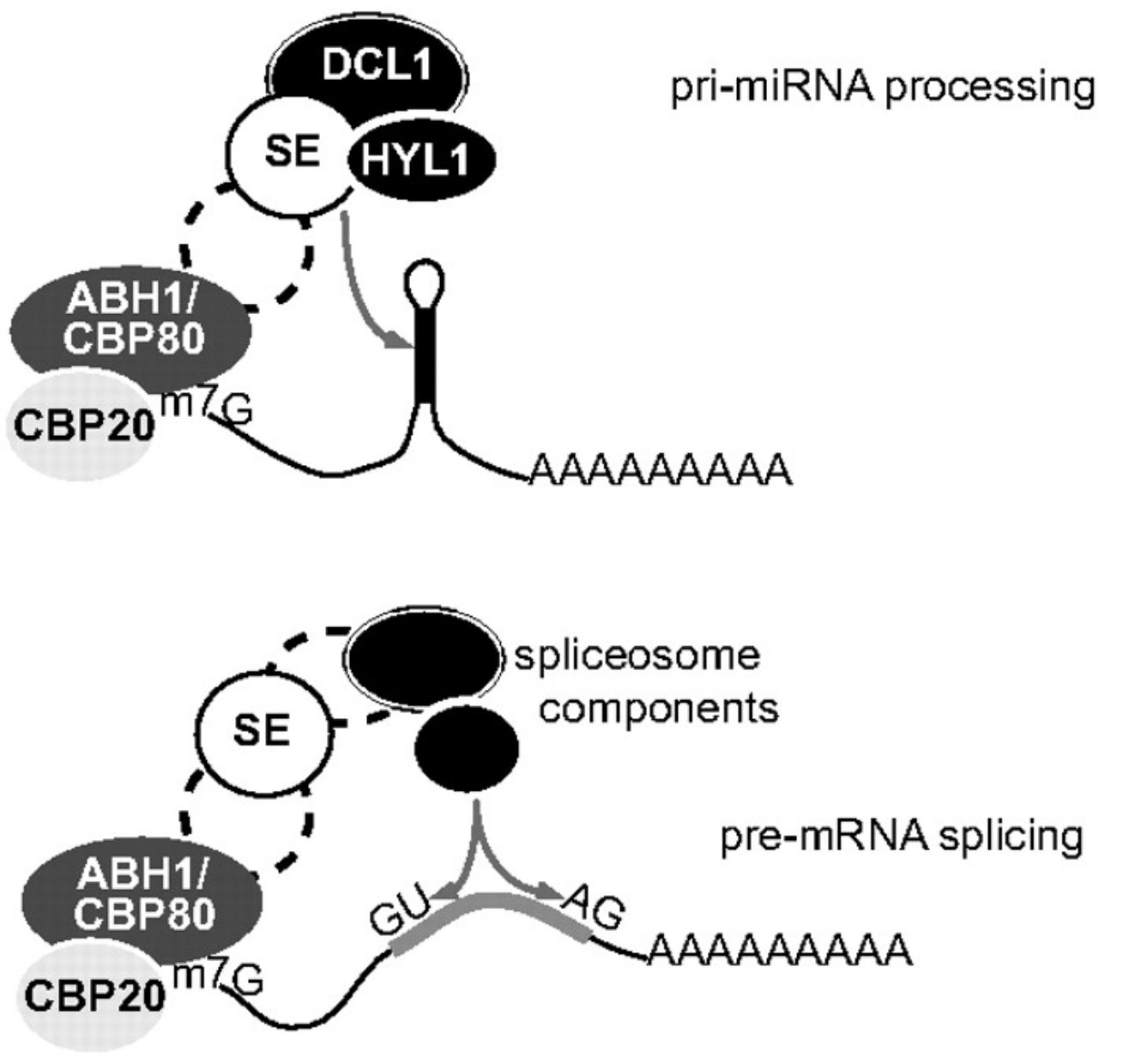 The SERRATE (SE) protein is an essential, conserved eukaryotic RNA processing factor important for plant development. Plant and animal SE are probably best known for its function in the microRNA pathway. But SE also participates in other RNA maturation steps, including constitutive and alternative splicing of mRNAs, RNA 3ʹ-end formation, biogenesis of long non-coding RNAs, RNA transport and RNA stability. The SE protein is composed of different domains, which function in RNA binding and mediate protein-protein interactions. It is still surprising for us that a single protein can fulfill so many different function. We think that specific SE interactors help SE conducting all these specific functions. For instance, SE interacts with HYL and DCL1 to promote microRNA processing. Identifing more of such interactors will eventually help to understand SE function in plants in animals.