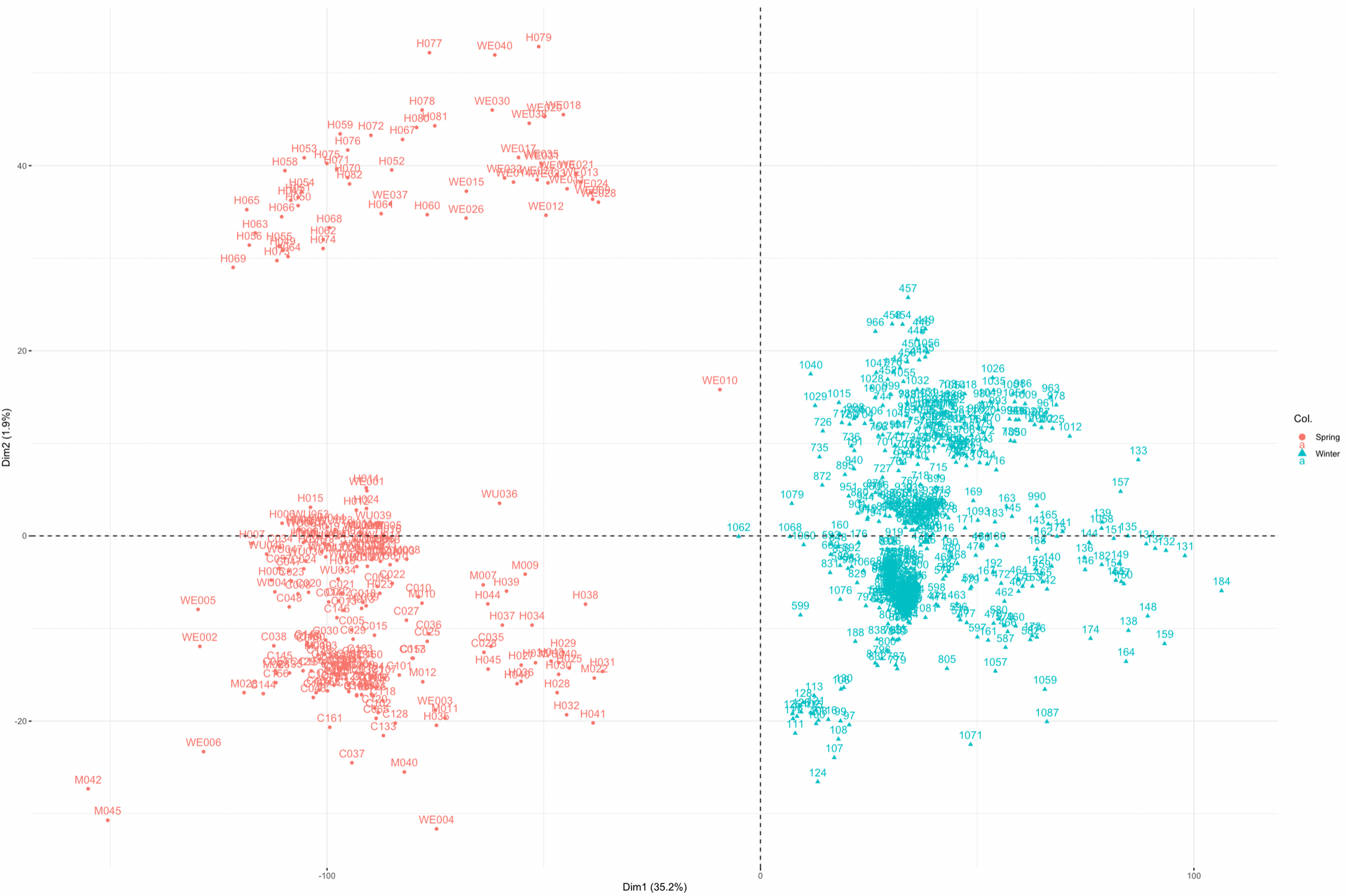 Arabidopsis thaliana plants, spanning two main habitats during winter and summer (2021–2024). These plants were phenotyped for 15 traits, resulting in a dataset of more than 35,000 phenotypic data points. This comprehensive dataset allows us to detect subtle trait variations, identify patterns of environmental adaptation, and provides an exceptionally rich resource for statistical and machine learning approaches.